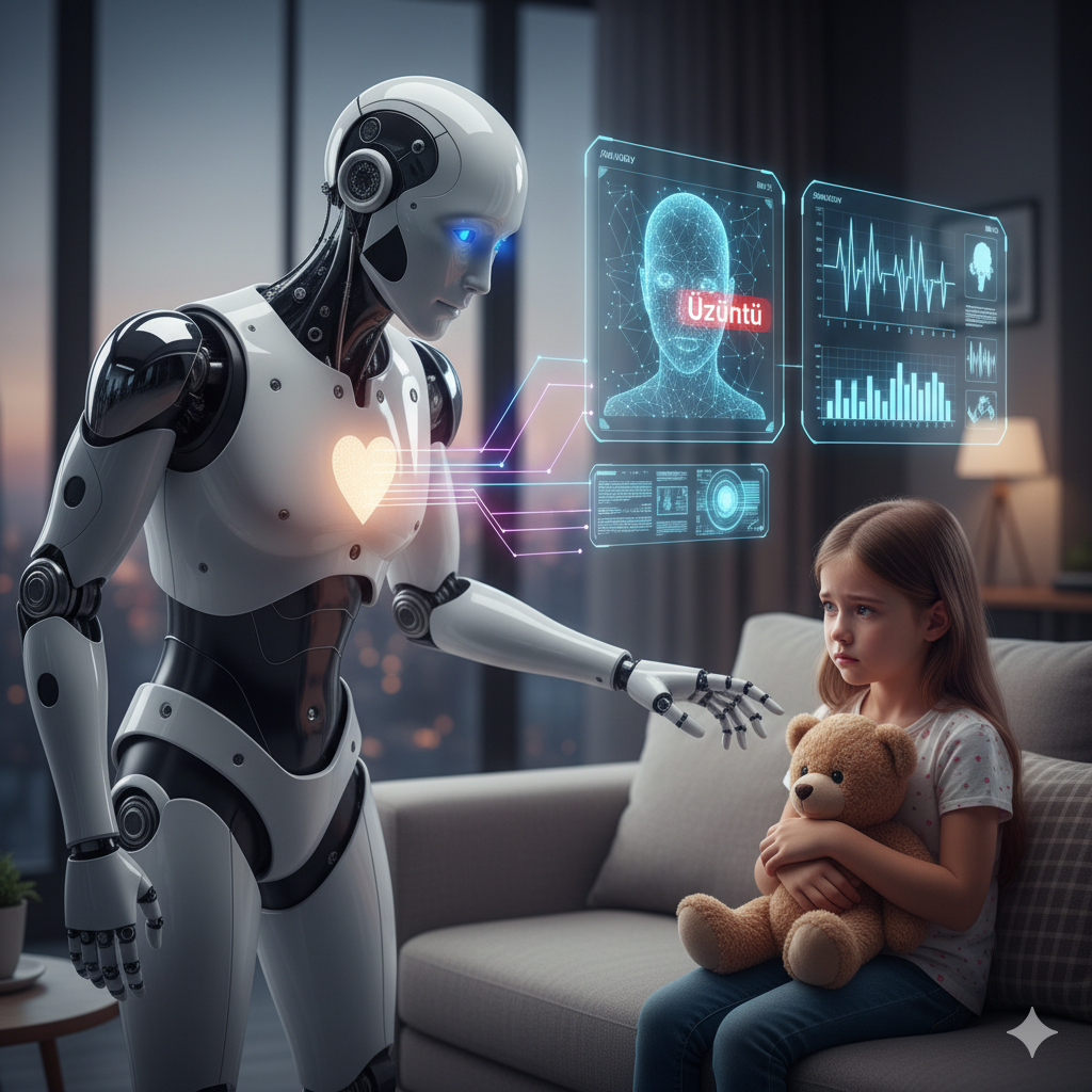 Duygusal Yapay Zekâ, bir makinenin insan duygularını (neşe, öfke, şaşkınlık, üzüntü vb.) çeşitli yollarla (yüz ifadeleri, ses tonu, vücut dili ve metin) algılama, yorumlama ve bunlara uygun tepkiler üretme yeteneğidir. Bu teknoloji, robotların sadece komutları yerine getiren araçlar değil, aynı zamanda bağlamı ve kullanıcının psikolojik durumunu anlayan sosyal varlıklar olmasını sağlar.