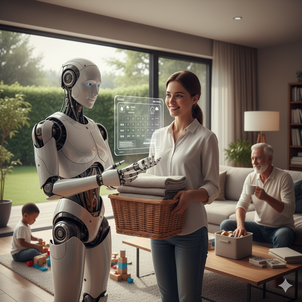 İnsansı ev asistanları, hem fiziksel işgücü hem de bilişsel destek sağlayarak çok katmanlı bir yardım sunar: