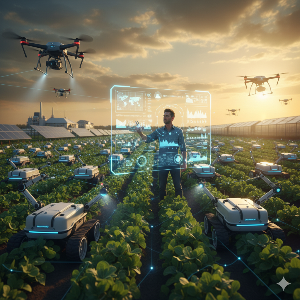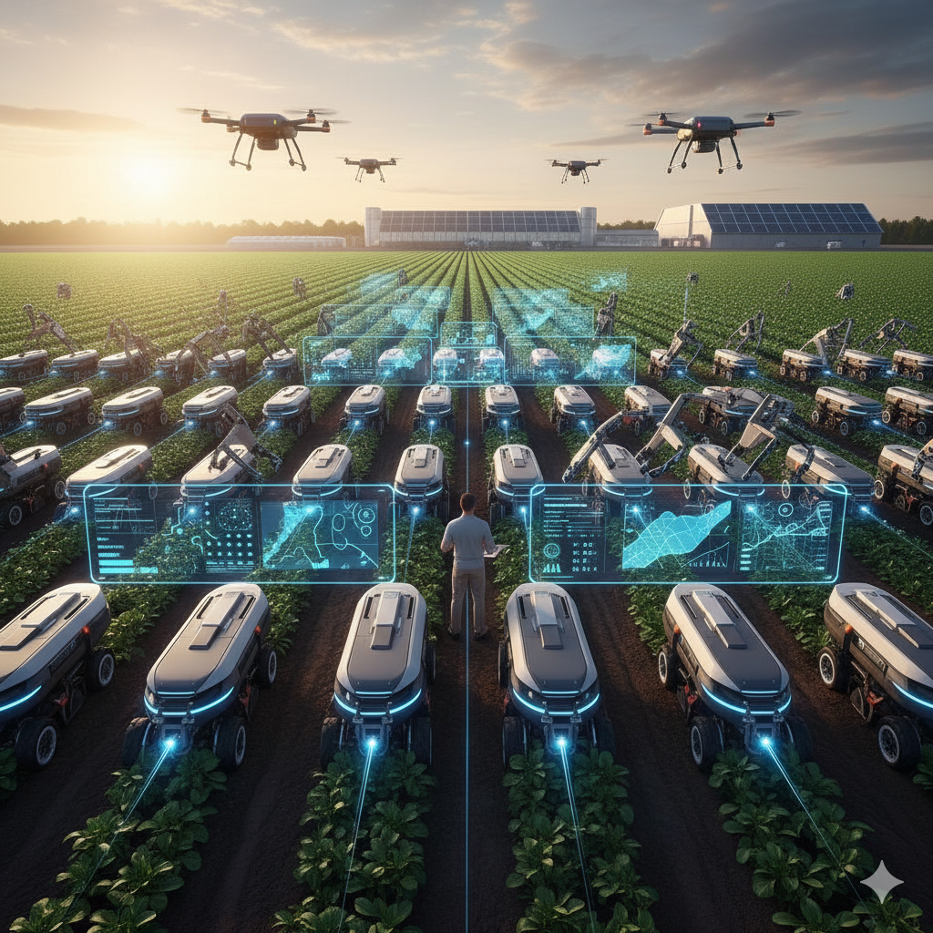 Akıllı çiftlikler, sensörler, Yapay Zeka (AI) ve robotik sistemlerin entegre çalıştığı, veriye dayalı kararların alındığı, yüksek teknolojili tarım alanlarıdır. Robot işçiler ise bu alanlarda, ekimden hasada, hastalık yönetiminden toprak analizine kadar tüm süreçleri otonom ve hassas bir şekilde yürüten makinelerdir.