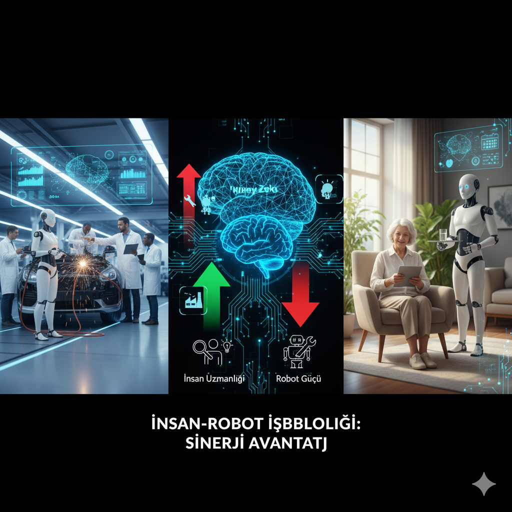 Geleceğin fabrikaları, insan zekâsının yaratıcılık, eleştirel düşünme ve duygusal zekâ gerektiren rollerde; robotik zekânın ise hız, hassasiyet ve dayanıklılık gerektiren rollerde en iyi performansı sergilediği hibrit işbirliği merkezleri olacaktır.