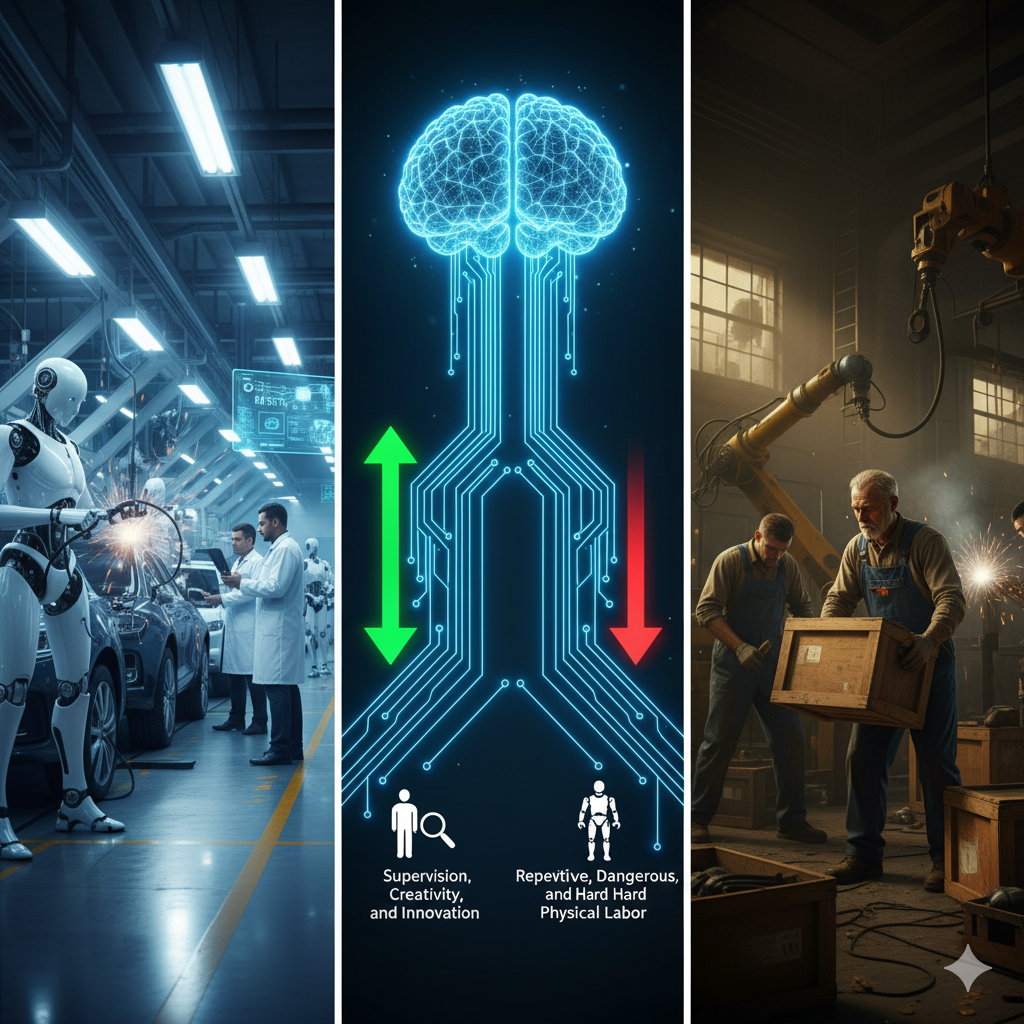 İnsansı robotların yaygınlaşması, rutin ve tekrarlayan işleri (montaj, veri girişi, standart depolama) ortadan kaldırırken, insana özgü becerilerin ve robotları yönetme yetkinliğinin ön planda olduğu yepyeni iş kategorileri yaratacaktır.