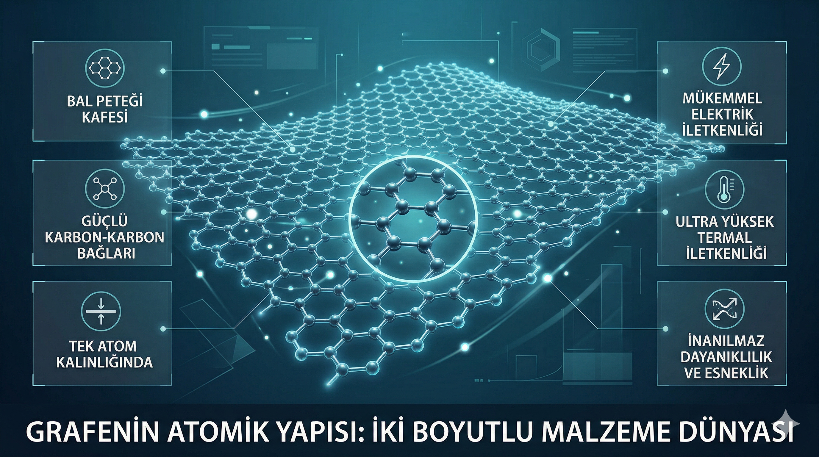Grafen, karbon atomlarının altıgen bir bal peteği örgüsü şeklinde dizilmesiyle oluşan, sadece bir atom kalınlığında iki boyutlu bir kristal yapıdır. Onu bu kadar özel kılan şey, atomları arasındaki bağların inanılmaz derecede güçlü olmasıdır.