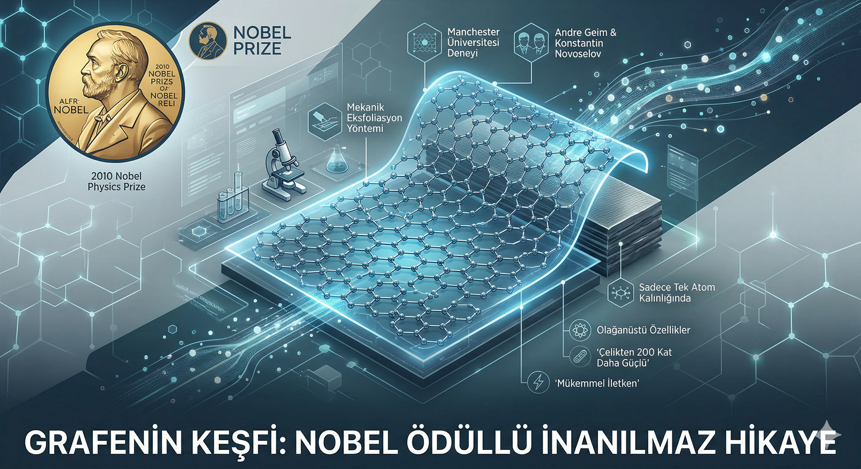 Grafenin keşif hikayesi, bilimde merakın ve basit denemelerin ne kadar değerli olduğunun en büyük kanıtıdır. Geim ve Novoselov, milyar dolarlık bir cihazın başında değil, masalarındaki bir bant rulosuyla Nobel’e yürüdüler.