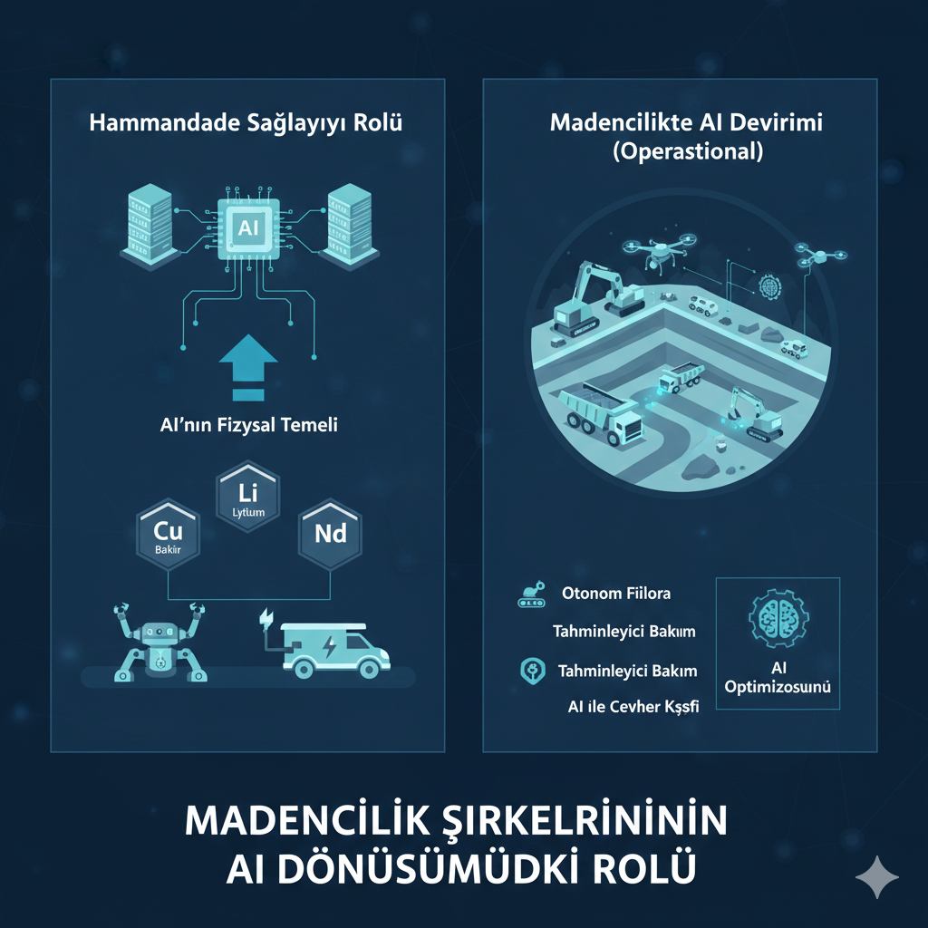 2026’nın en büyük trendi, AI’nın sadece maden çıkarmayı değil, “geri kazanmayı” da analiz etmesidir. Yapay zeka, hangi bölgedeki e-atıkların ne kadar lityum veya bakır barındırdığını analiz ederek, madencilik şirketlerine “şehir madenciliği” için lokasyon önerileri sunmaktadır. Bu, fiziksel maden tedarik zinciri riskini azaltan en güçlü “Plan B” olarak öne çıkmaktadır.
