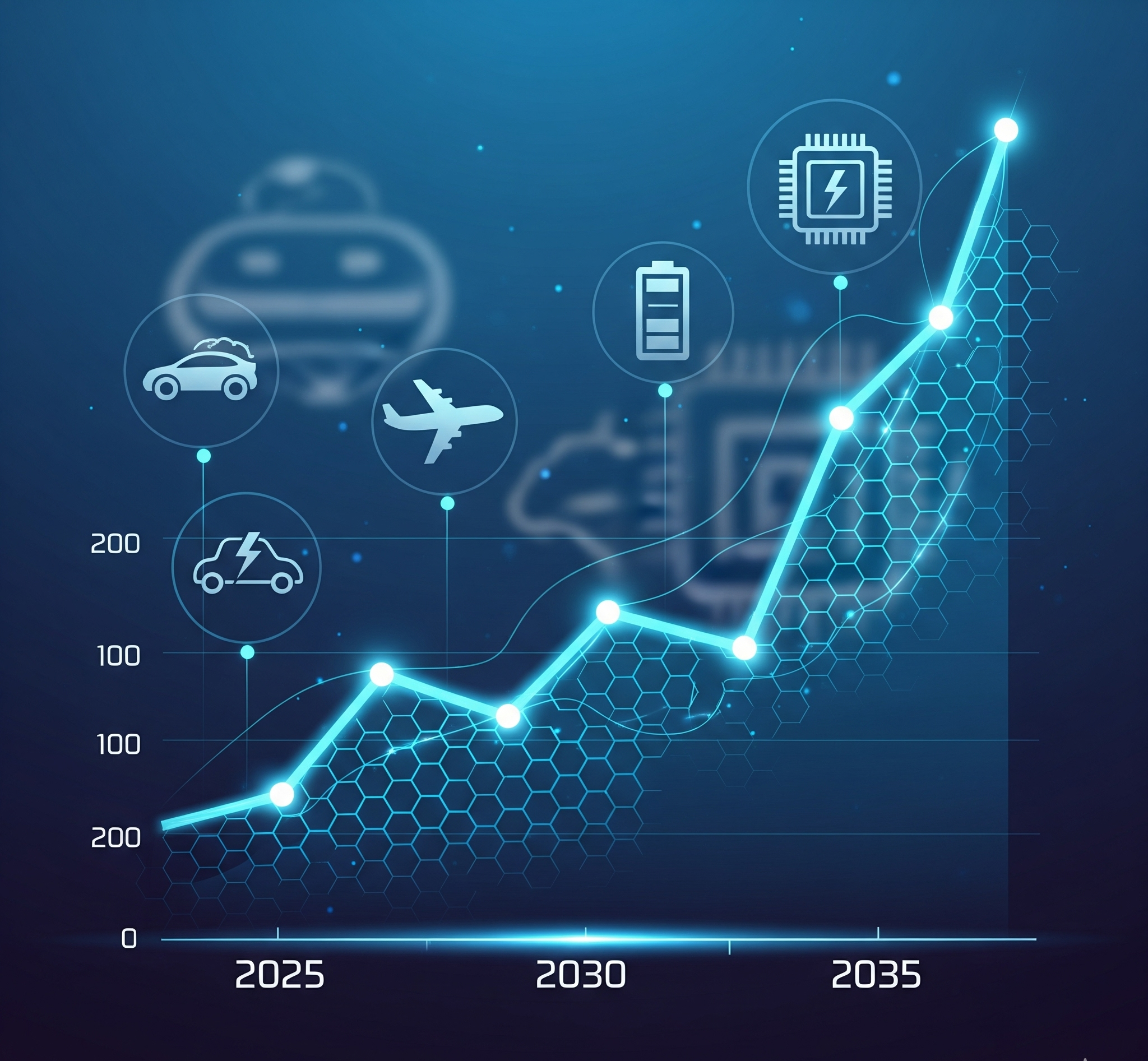 Grafen pazarının önümüzdeki 5-10 yıl içinde (2030-2035’e doğru) katlanarak büyümesi bekleniyor. Bu büyümeyi tetikleyecek ana sektörler şunlardır: