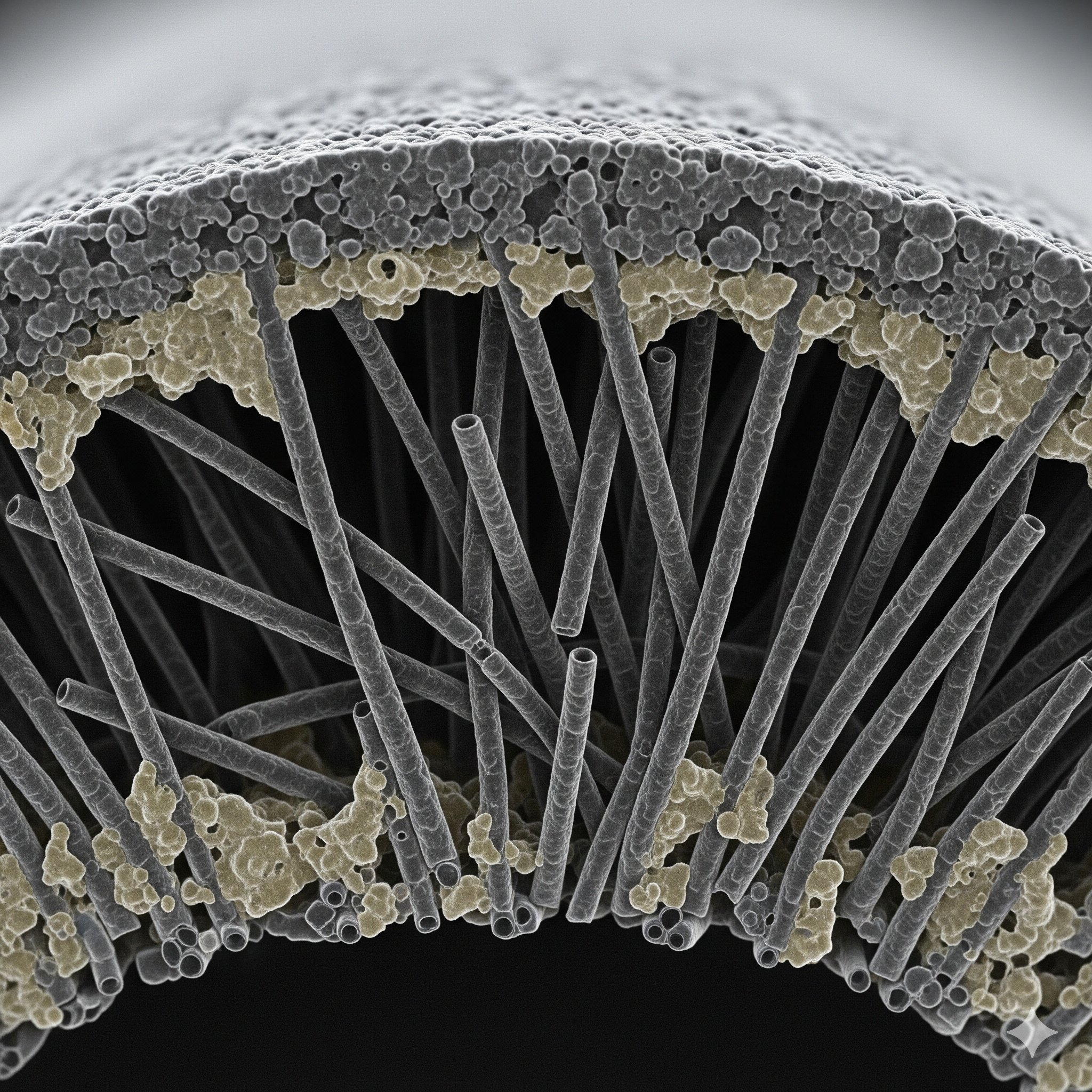 1. Yük Transfer Mekanizması: CNT’ler, kompozit malzemenin maruz kaldığı stresi ve yükü, zayıf olan polimer matristen kendi üzerlerine çekerler. Olağanüstü mukavemetleri sayesinde bu yükü kolayca taşıyabilirler. Bu etkili yük transferi, malzemenin genel çekme mukavemetini ve elastikiyet modülünü (sertliğini) katbekat artırır.