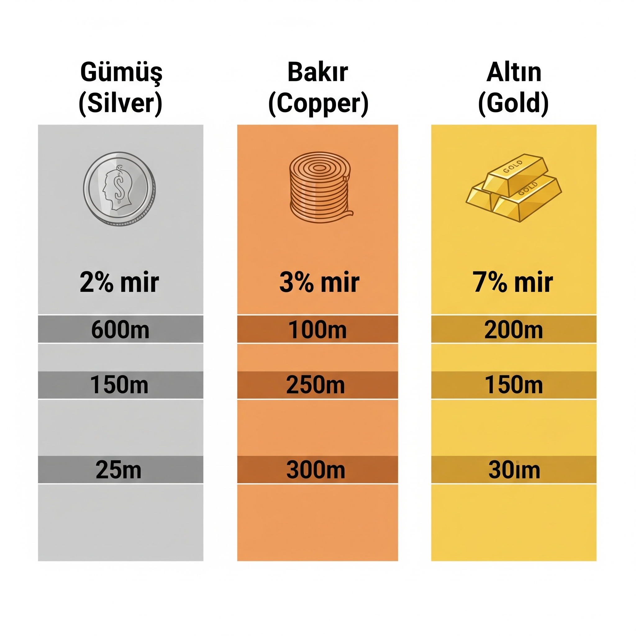 | Özellik | Gümüş (Ag) | Bakır (Cu) | Altın (Au) |