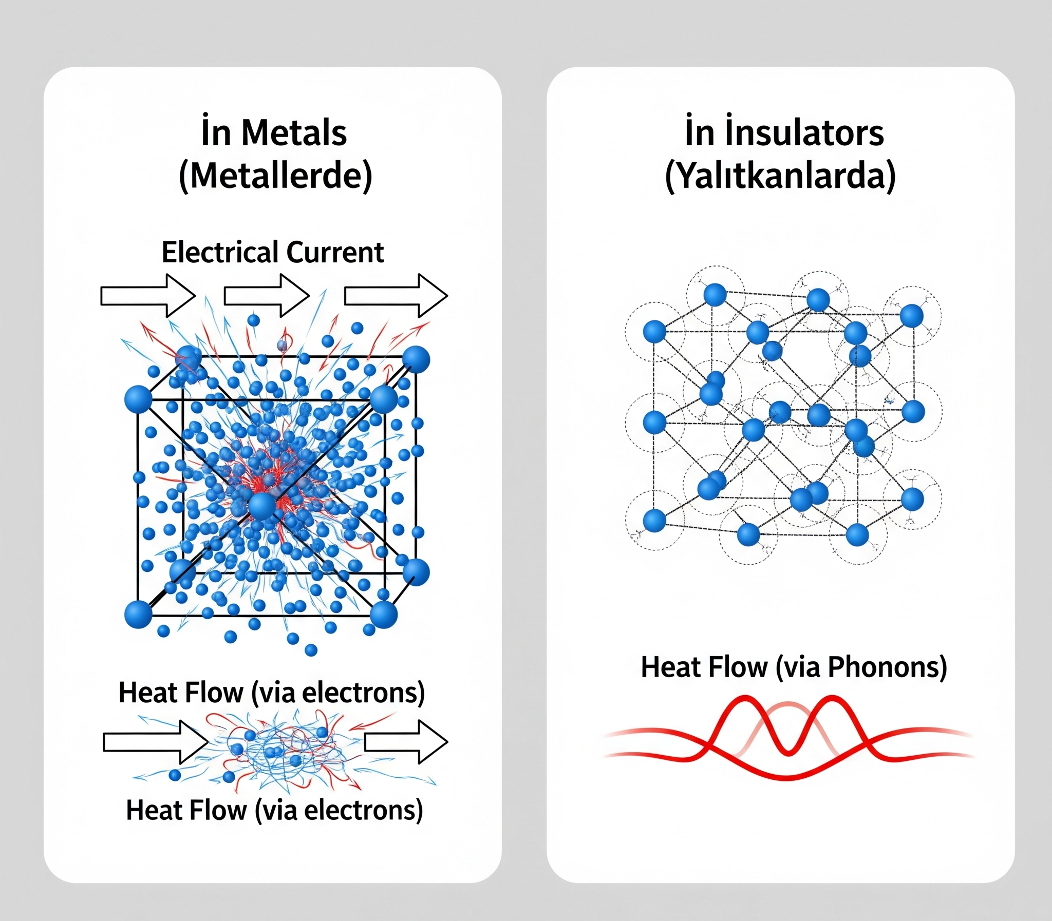 İlk bakışta farklı gibi görünen bu iki “akış” süreci, özellikle metallerde aynı taşıyıcılar tarafından yönetilir.